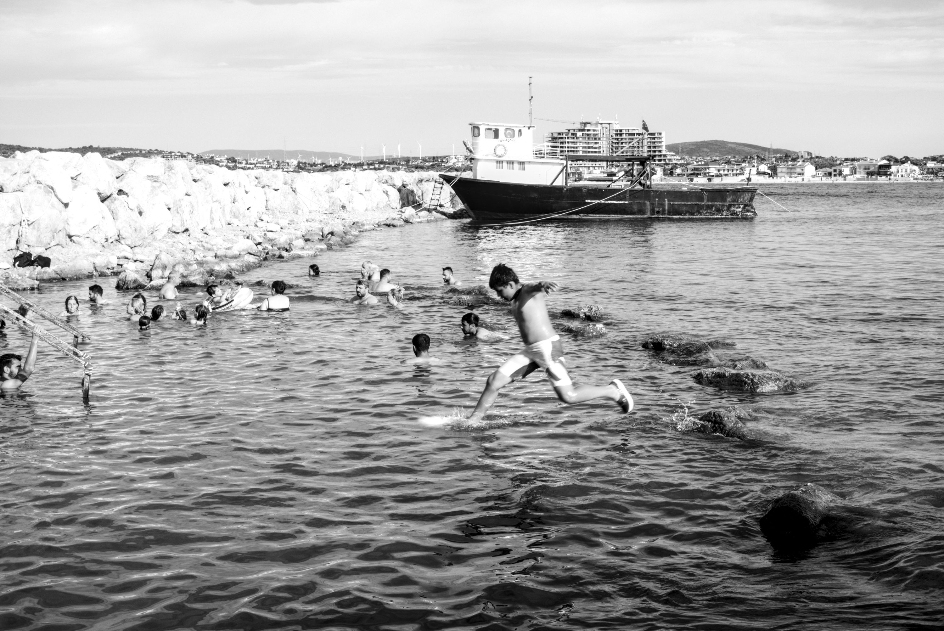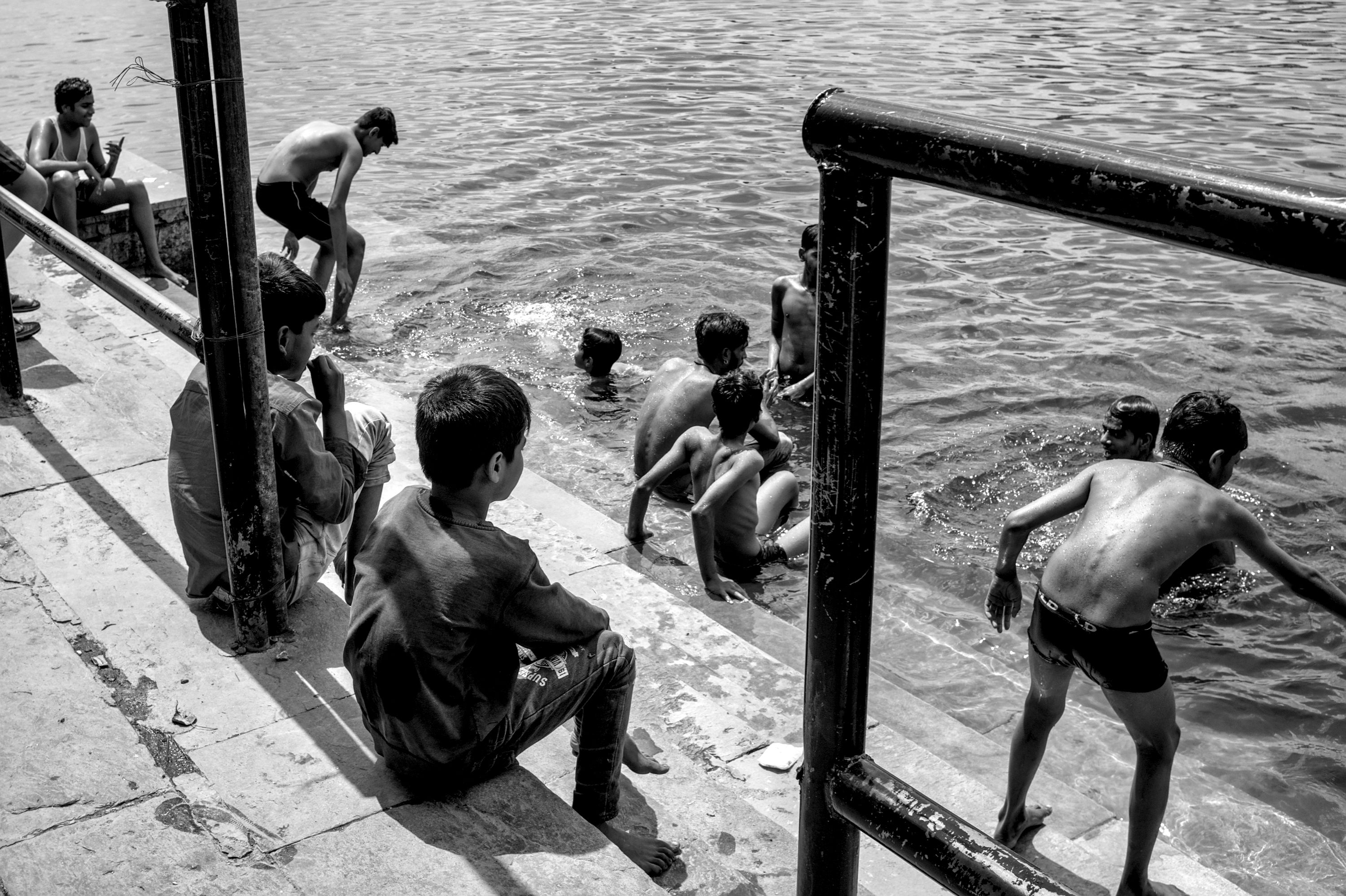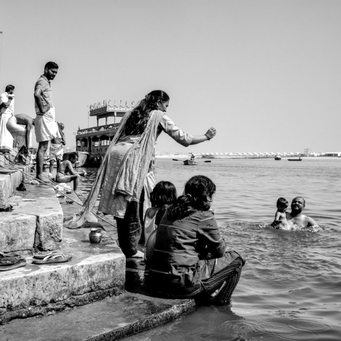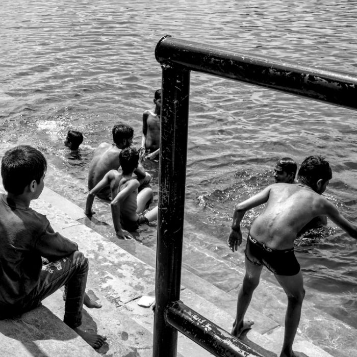 Source de loisirs, de travail ou de méditation, l'eau transforme les lieux en espaces aux multiples activités. Les silhouettes s’y nourrissent, s’y confrontent ou s’y abandonnent, révélant la diversité des usages auquels chacun s'affaire autour de cet élément si précieux.